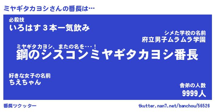 | ヒーロー風カッコイイあだ名 | 『スーパーミヤギタカヨシ』 |