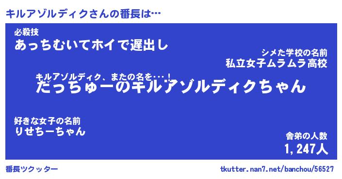 | ファンタジー風あだ名 | 『キルフェル』『ファントムキルス』 |