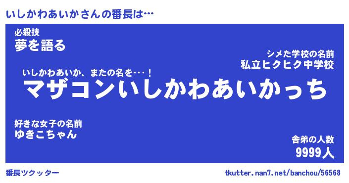 | 伝説のあだ名 | 『封印されしスナイパーいしかわあいか』 |