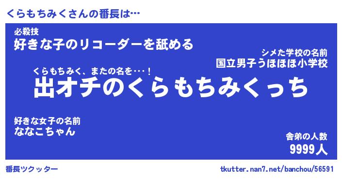 | 伝説のあだ名 | 『伝説のスナイパーくらもちみく』 |