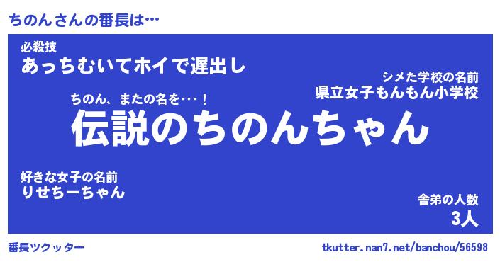 | 伝説のあだ名 | 『伝説のスナイパーちのん』 |