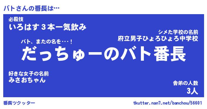 | ヒーロー風カッコイイあだ名 | 『スーパーバト』『ウルトラバトマン』 |