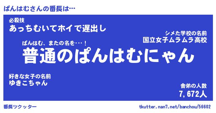 | 意味不明あだ名 | 『ペロリンぱんはむ』『永久保存ぱんはむ』 |