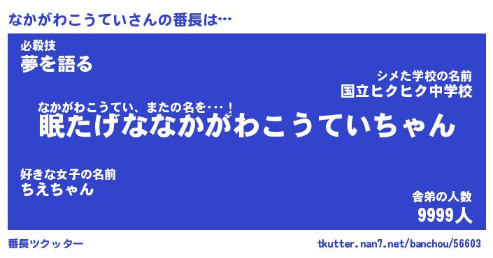 | ヒーロー風カッコイイあだ名 | 『スーパーナカガワコウテイ』 |