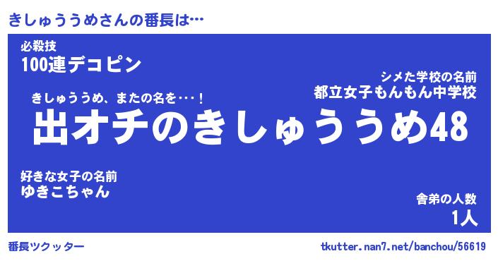 | ヒーロー風カッコイイあだ名 | 『スーパーキシュウウメ』『黄金騎士キシ』 |