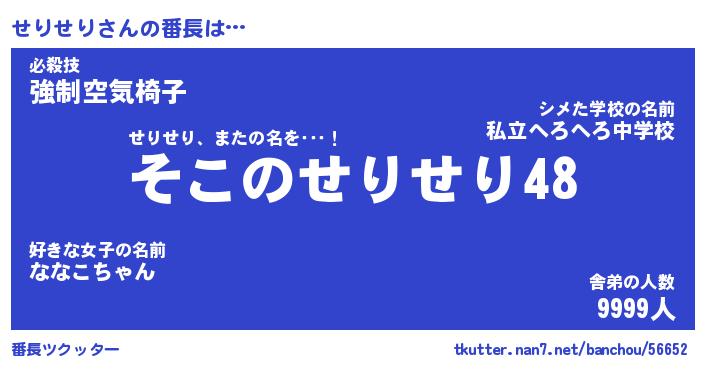| 2回繰り返すあだ名 | 『せりせり』『せせりり』『いらいら』 |