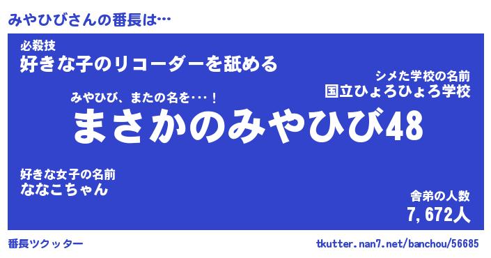 | ヘコむあだ名 | 『みやにー』『酢こんぶ』 |