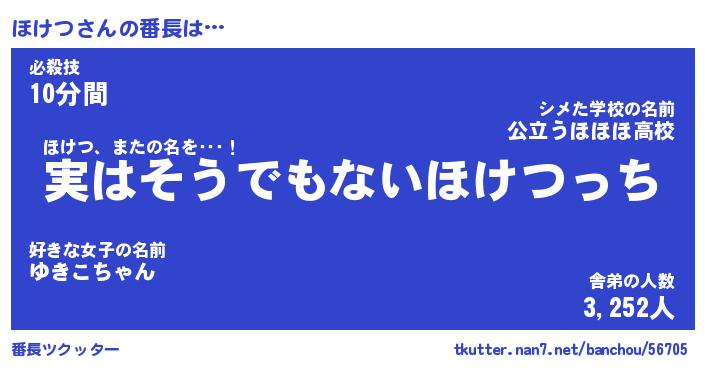 | 伝説のあだ名 | 『封印されしスナイパーほけつ』 |