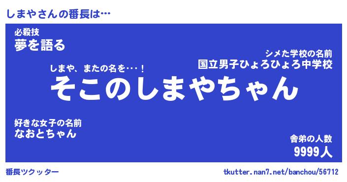 | 意味不明あだ名 | 『ペロリンしまや』『しまやフォーエバー』 |