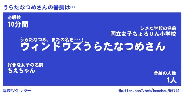 | 男性向けラノベタイトル風あだ名 | 『うらたなつめの憂鬱』 |