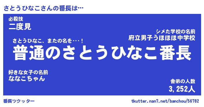 | ヒーロー風カッコイイあだ名 | 『スーパーサトウヒナコ』『幻影騎士サト』 |