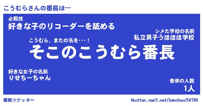 | 意味不明あだ名 | 『ペロリンこうむら』『永久保存こうむら』 |
