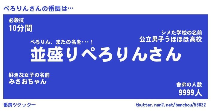 | ヒーロー風カッコイイあだ名 | 『スーパーペロリン』『天弓騎士ペロ』 |