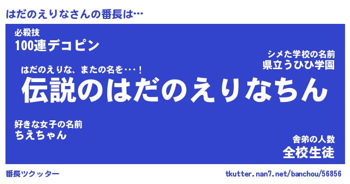 | 伝説のあだ名 | 『伝説の竜騎士はだのえりな』 |