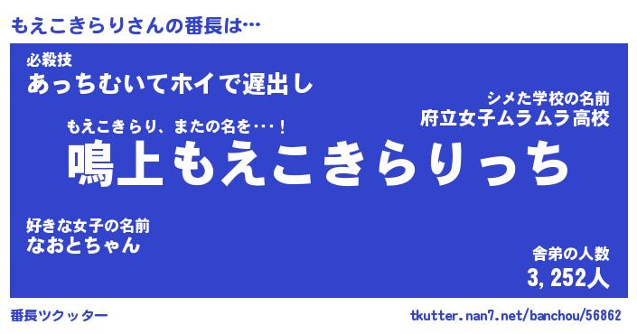 | ヘコむあだ名 | 『もえもー』『牛乳』『もえっぺ』 |