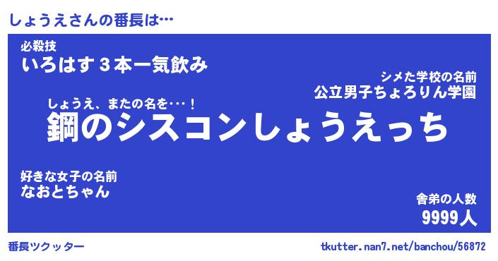 | 意味不明あだ名 | 『ペロリンしょうえ』『永久保存しょうえ』 |