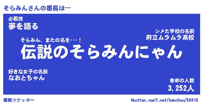 | 意味不明あだ名 | 『ペロリンそらみん』『永久保存そらみん』 |