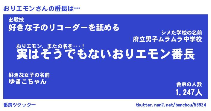| 欧米人風あだ名 | 『マイケルおりエモン』 |