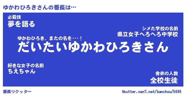 | ヒーロー風カッコイイあだ名 | 『スーパーユカワヒロキ』『幻影騎士ユカ』 |