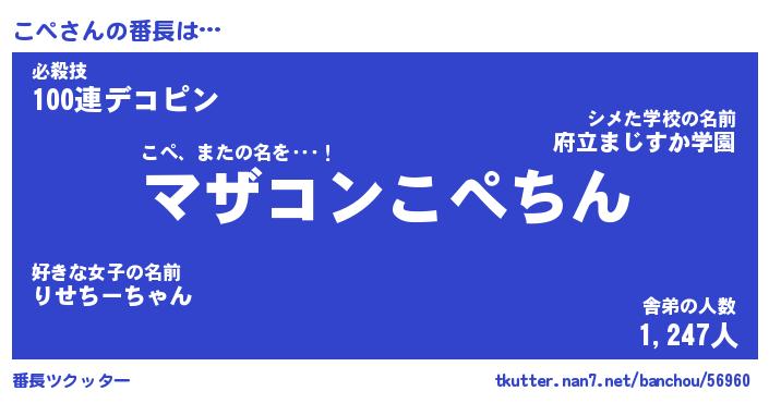 | 伝説のあだ名 | 『封印されしスナイパーこぺ』 |