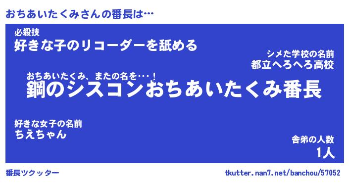| 伝説のあだ名 | 『封印されしスナイパーおちあいたくみ』 |