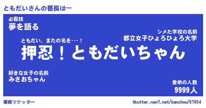| ファンタジー風あだ名 | 『トモフェル』『エターナルトモダイー』 |