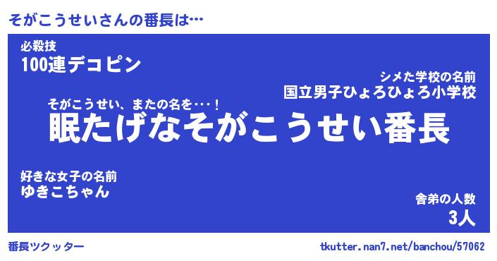 | ピコ太郎風あだ名 | 『ソコ二郎』『ピソ五郎』『ソガ六郎』 |
