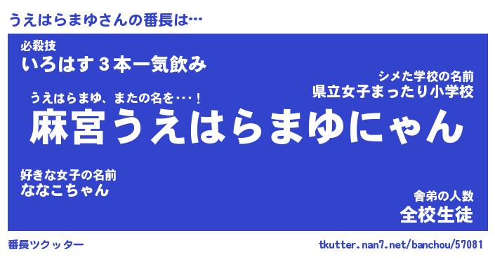 | 伝説のあだ名 | 『不死鳥のスナイパーうえはらまゆ』 |