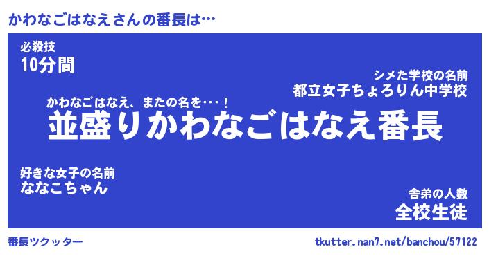 | 恥ずかしいあだ名 | 『プリティーかわなごはなえ』『かわちん』 |