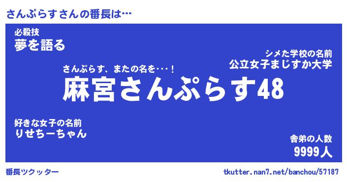 | 肩書あだ名 | 『さんぷらす社長』『さんぷらす国家主席』 |