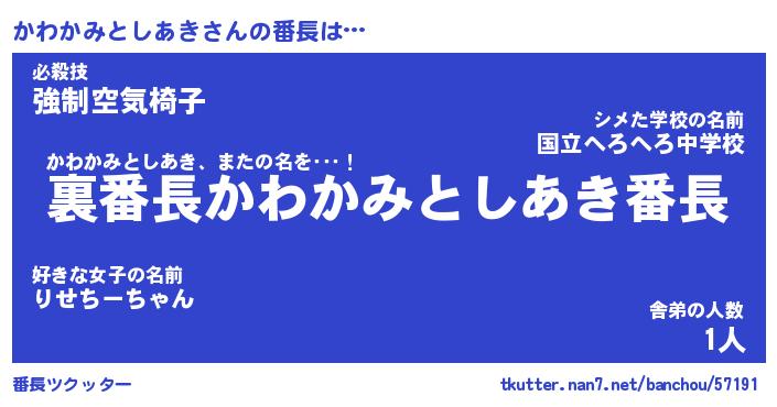 | 意味不明あだ名 | 『ペロリンかわかみとしあき』 |
