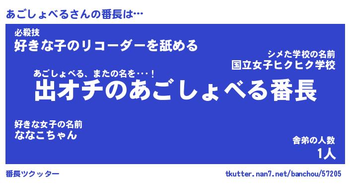 | ピコ太郎風あだ名 | 『アコ史郎』『ピア次郎』『アゴ六郎』 |