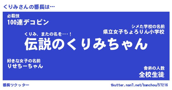 | ヒーロー風カッコイイあだ名 | 『スーパークリミ』『ウルトラくりみマン』 |