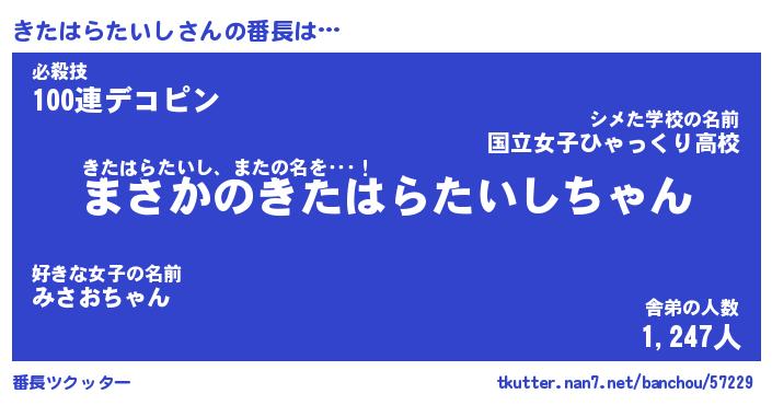 | ピコ太郎風あだ名 | 『キコ二郎』『ピキ一郎』『キタ一郎』 |