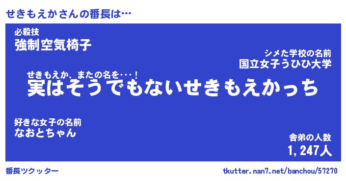 | 意味不明あだ名 | 『ペロリンせきもえか』 |