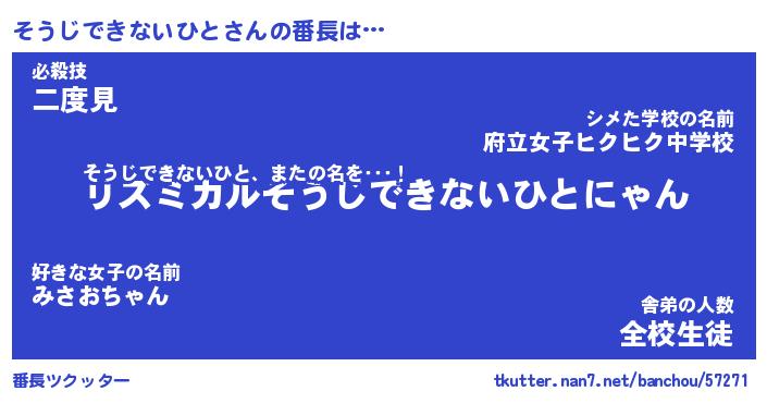 | 伝説のあだ名 | 『伝説のスナイパーそうじできないひと』 |