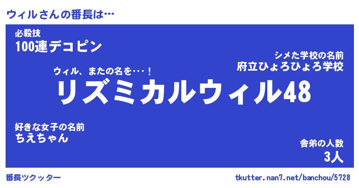 | 肩書あだ名 | 『ウィル社長』『ウィル総理大臣』 |