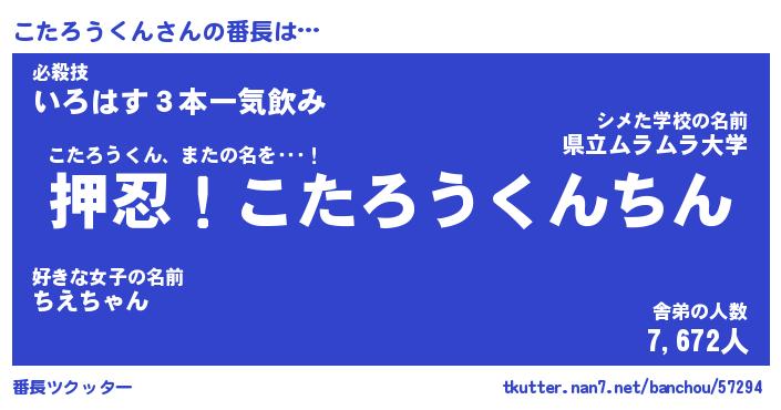 ヘコむあだ名 | 『こたもー』『酢こんぶ』『こたお』 |