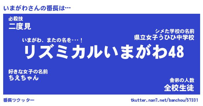 | 意味不明あだ名 | 『ペロリンいまがわ』『永久保存いまがわ』 |