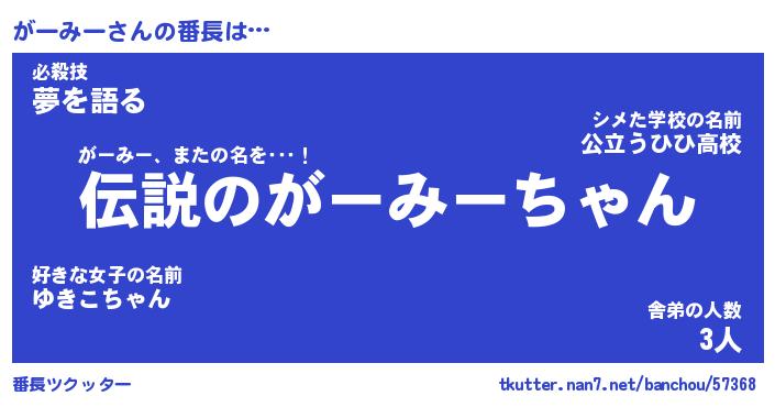 | 伝説のあだ名 | 『伝説のスナイパーがーみー』 |