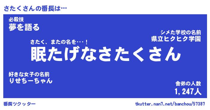 | 意味不明あだ名 | 『ペロリンさたく』『さたくフォーエバー』 |