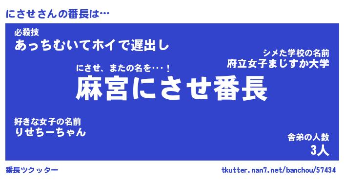 | ヒーロー風カッコイイあだ名 | 『スーパーニサセ』『ウルトラにさせマン』 |