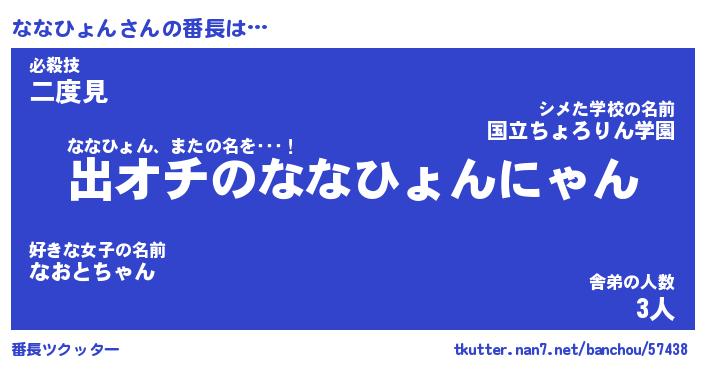 | 男性向けラノベタイトル風あだ名 | 『ななひょんの憂鬱』 |