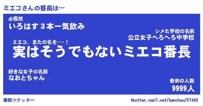 | ピコ太郎風あだ名 | 『ミコ六郎』『ピミ四郎』『ミエ六郎』 |
