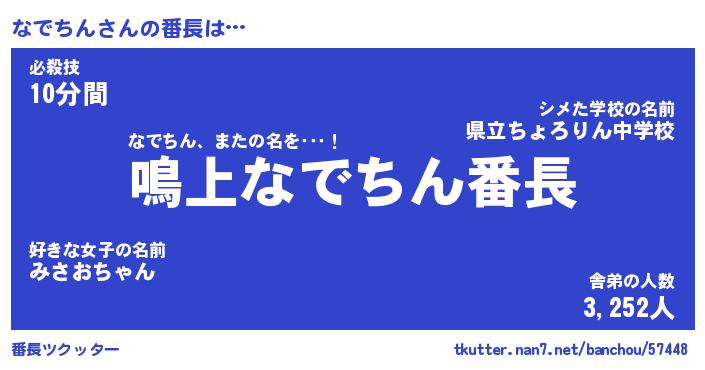 | 意味不明あだ名 | 『ペロリンなでちん』『永久保存なでちん』 |