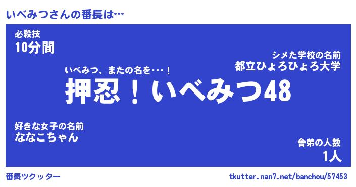 | 意味不明あだ名 | 『ペロリンいべみつ』『永久保存いべみつ』 |