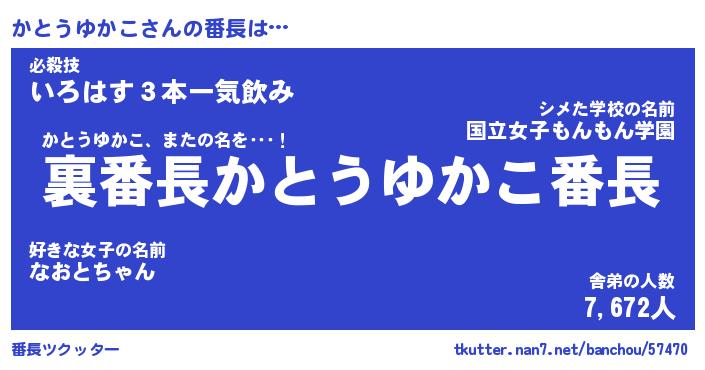 | 伝説のあだ名 | 『不死鳥のスナイパーかとうゆかこ』 |