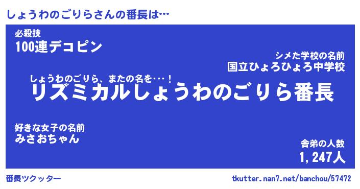 | 伝説のあだ名 | 『伝説のスナイパーしょうわのごりら』 |