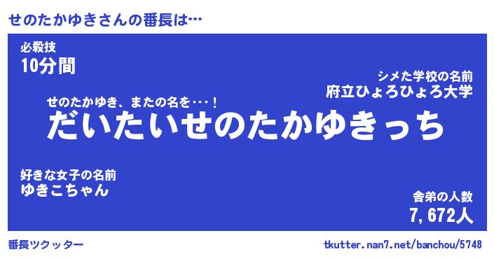 | 男性向けラノベタイトル風あだ名 | 『せのたかゆきの憂鬱』 |