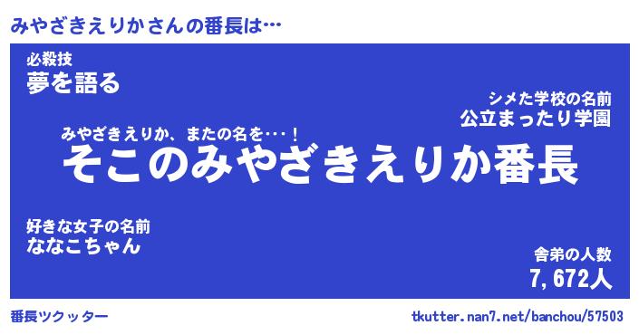| 男性向けラノベタイトル風あだ名 | 『みやざきえりかの憂鬱』 |